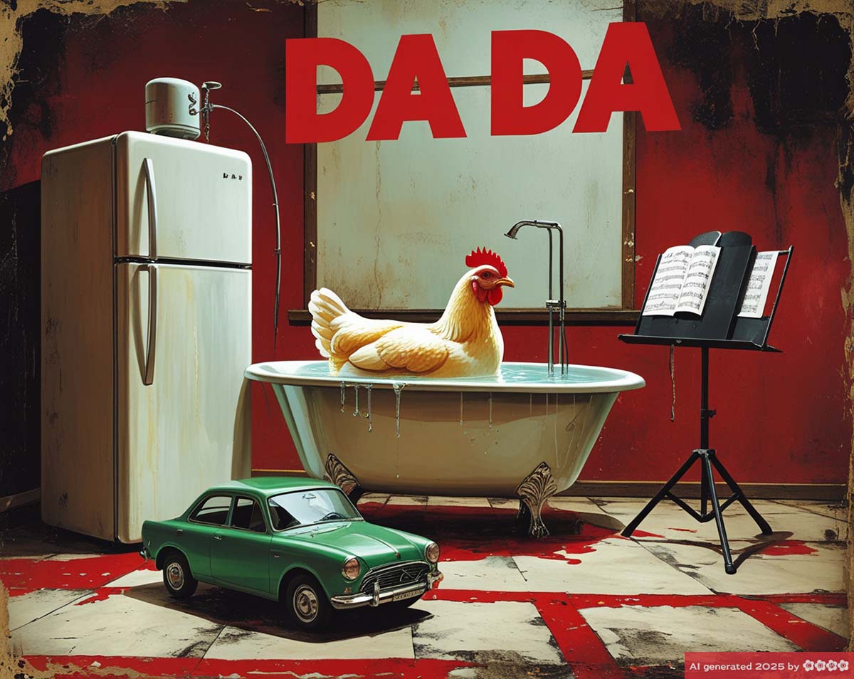 - Zufall und Absurdität: Dadaistische Werke basierten oft auf Zufallsprinzipien und spielten mit dem Absurden und Sinnlosen.