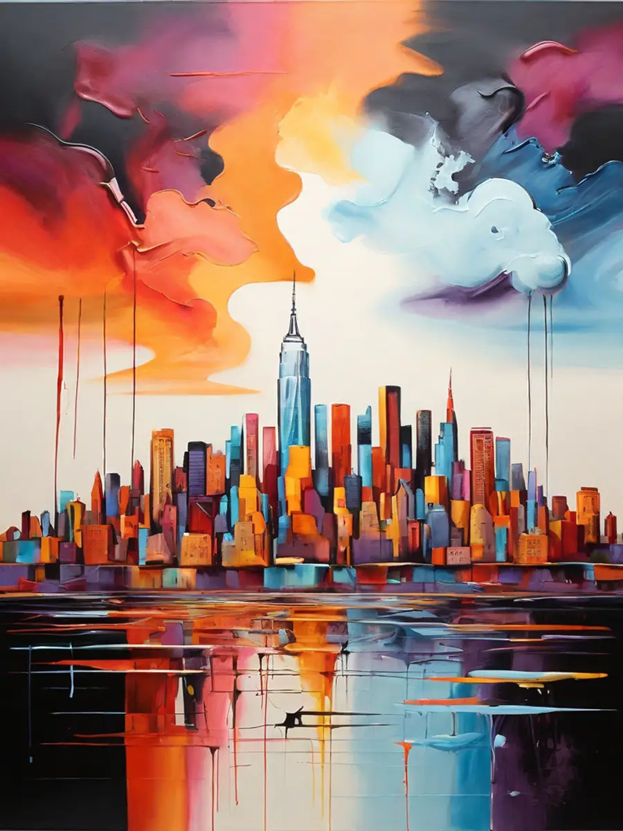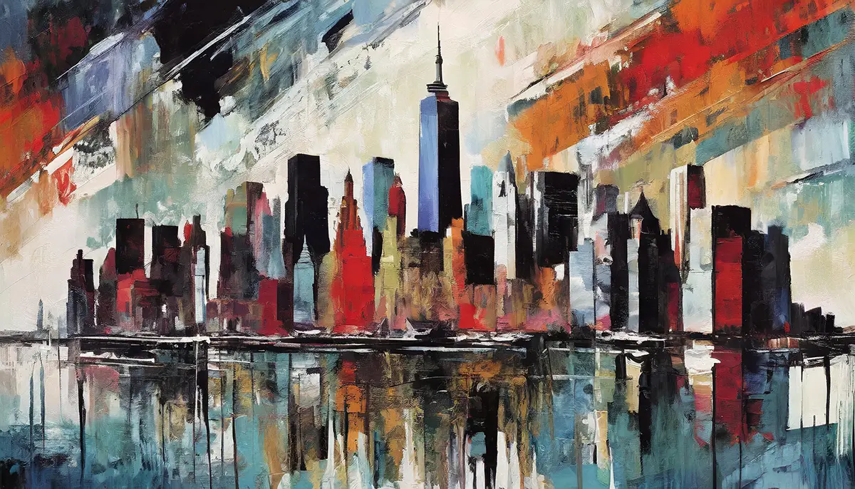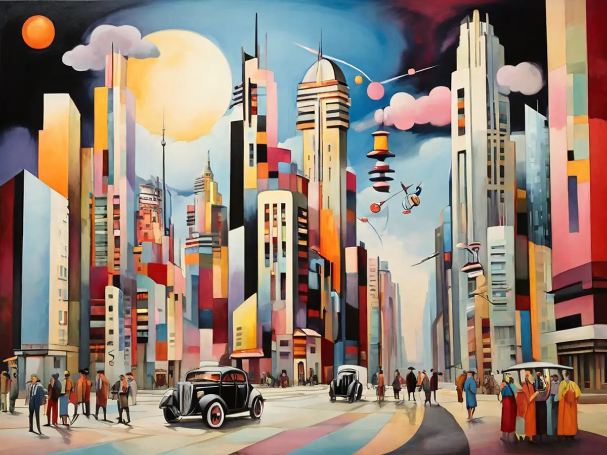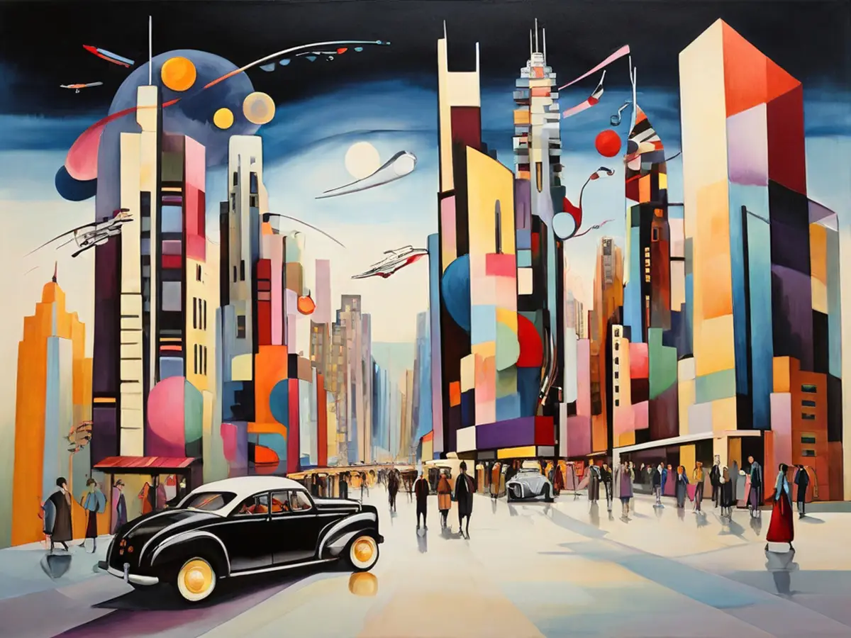 City mit Wolkenkratzern à la Wassily Kandinsky