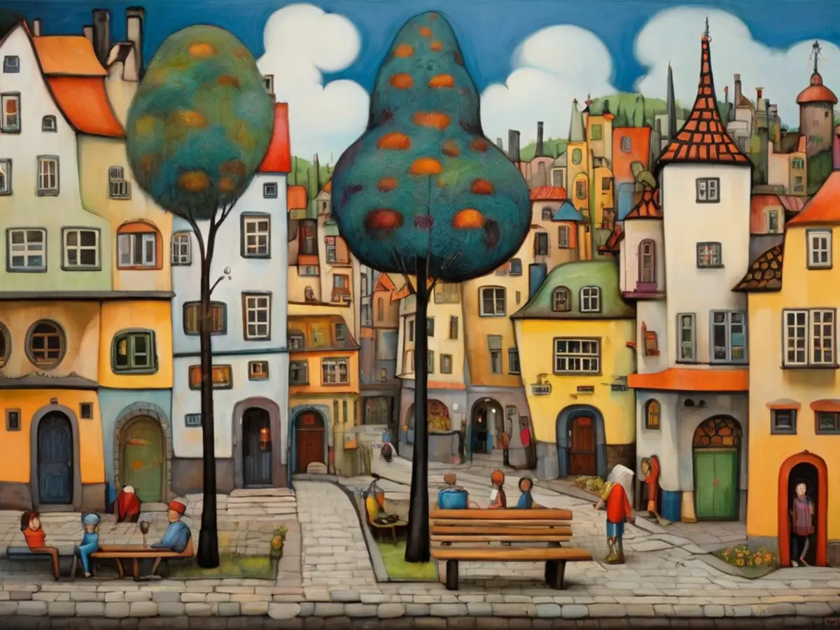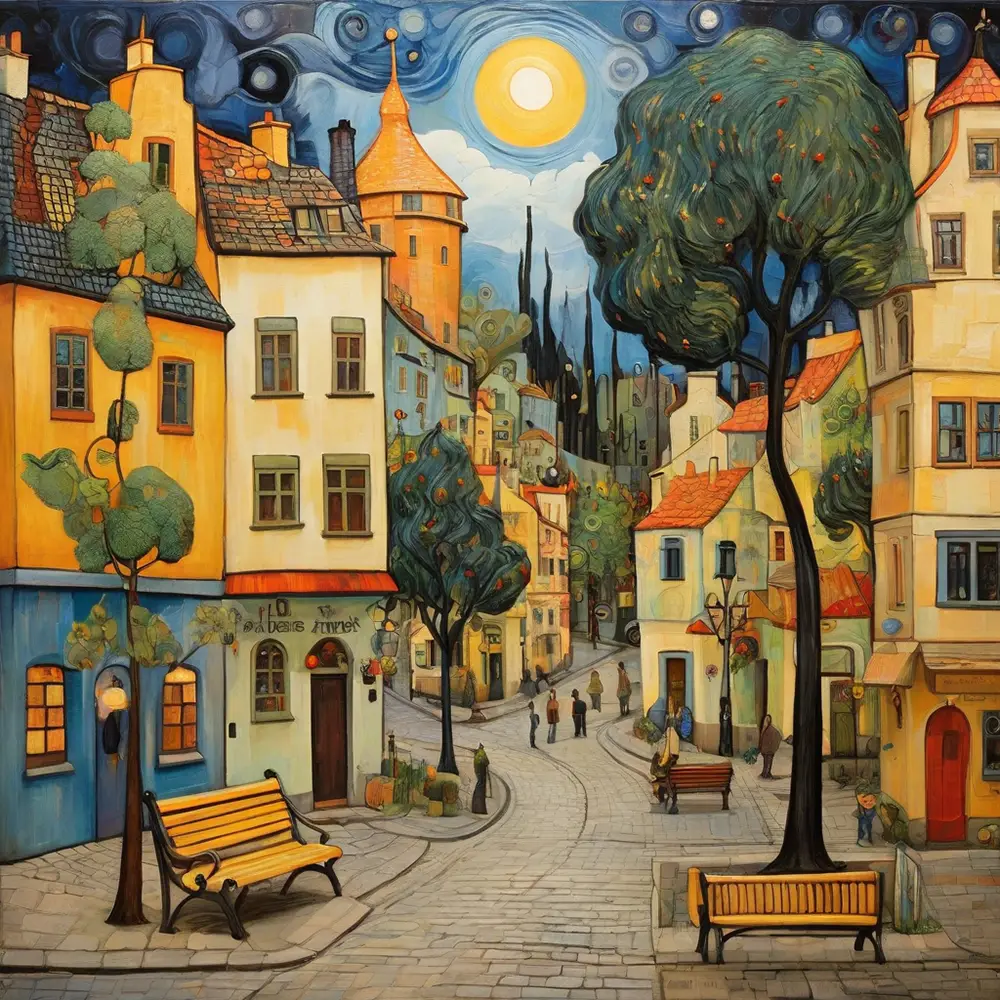 Bei den Querformaten habe ich u.a. „Hundertwasser” gepromptet, bei den quadratischen Bildern habe ich „Hundertwasser & van Gogh” angegeben. Von den Ergebnissen, die Leonardo mir präsentierte, bin ich echt beeindruckt.