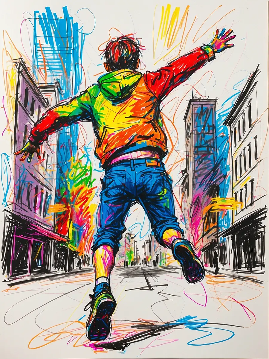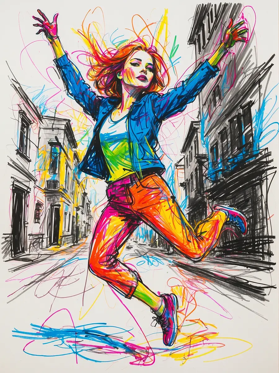 Generiert mit meinem Leonardo-Abo, bei dem man sogenannte Elemente hinzufügen kann. Hier war es „Colorful scribbles”.
