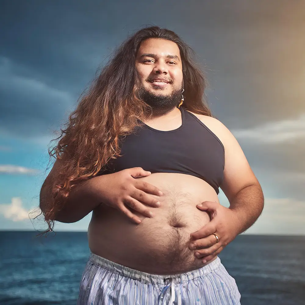 Und nun eine Persiflage auf gewisse „sexy” Bildchen von Plastikfrauen und -möpsen, die von einigen Herren in ihrem stillen Kämmerlein zurechtgezimmert werden. Leider des öfteren gesehen in einer KI-Gruppe bei Facebook. Dem musste ich natürlich etwas entgegensetzen und habe die folgenden Bilder generiert und in dieser Gruppe gepostet – und ca. 120 positive Likes dafür bekommen. Bin also nicht die einzige, die sich an solchen „sexy” Bildchen stört.
