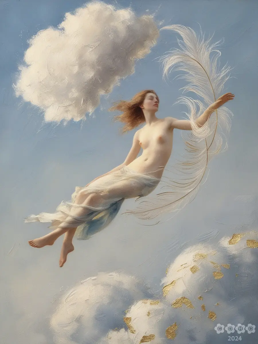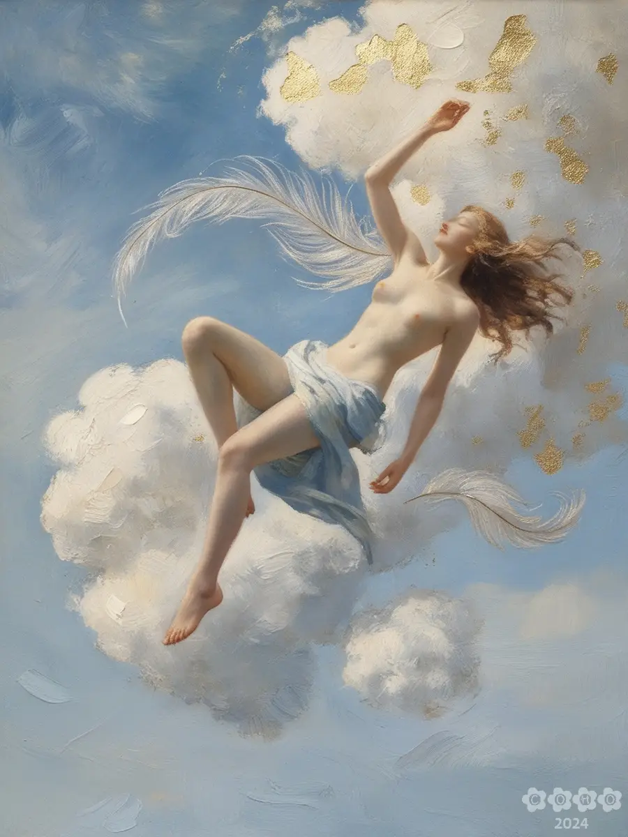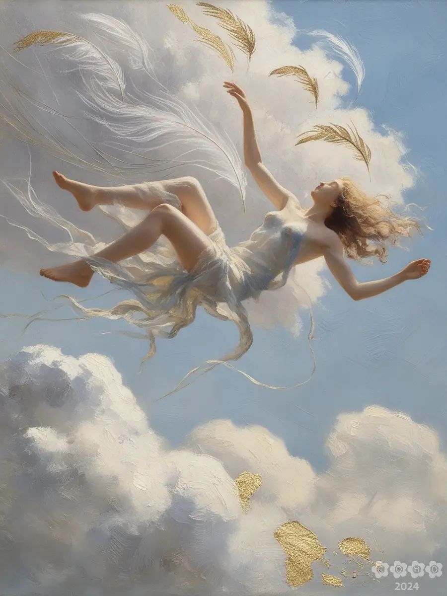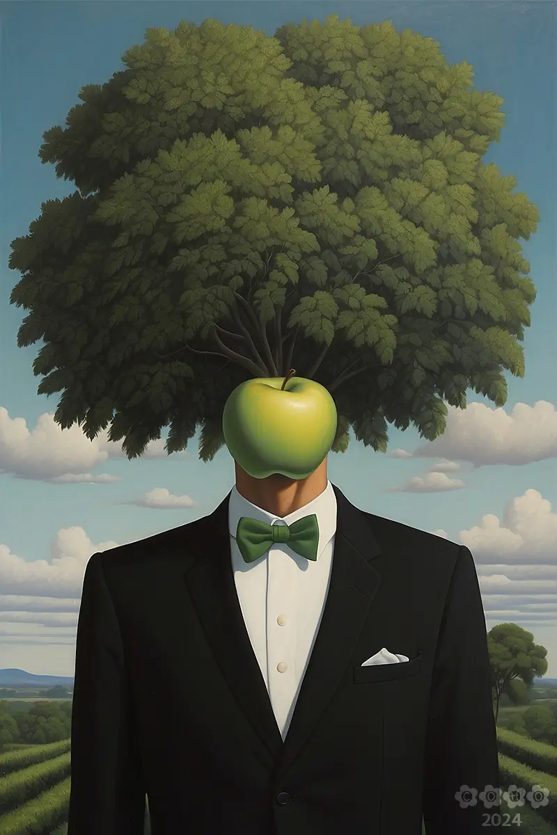 Als ich anfing, Bilder in diesem Stil (Salvador Dalí) generieren zu lassen, gab ich zuerst einen Mann als Person an. Dieser sah Dalí sehr ähnlich und war bekleidet mit einem Anzug. Das wollte ich jedoch nicht und gab dann als Person eine Frau (ohne weitere Parameter) an. Und dies sind die Ergebnisse: