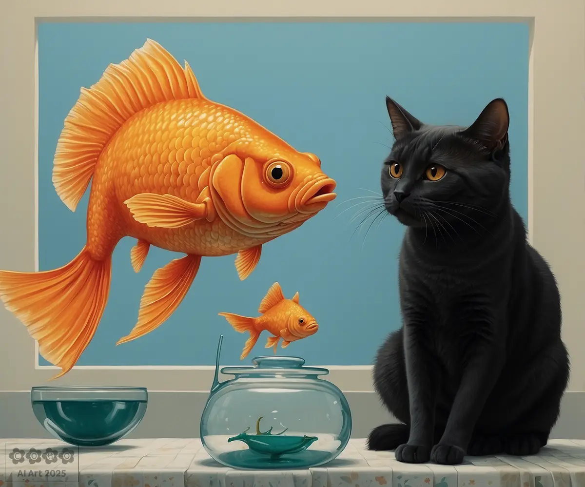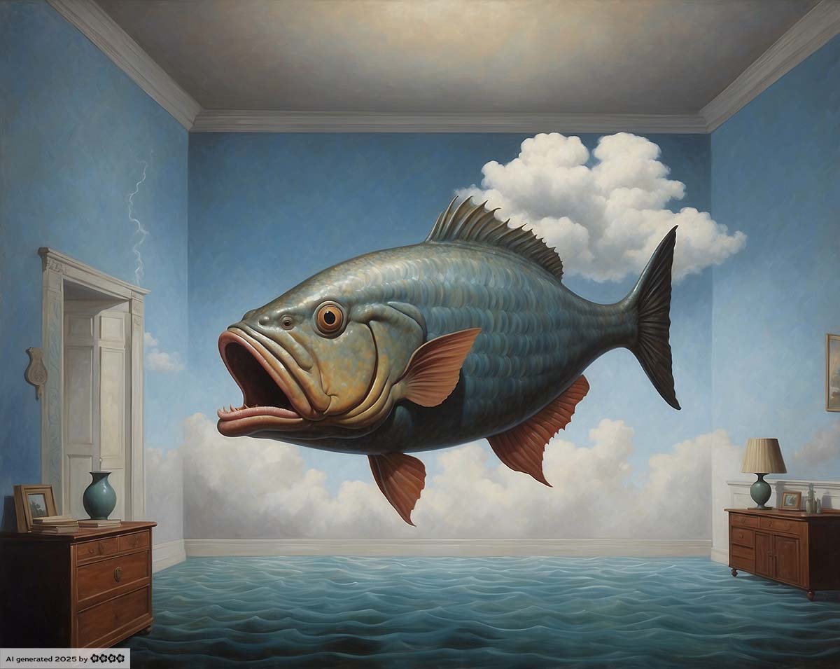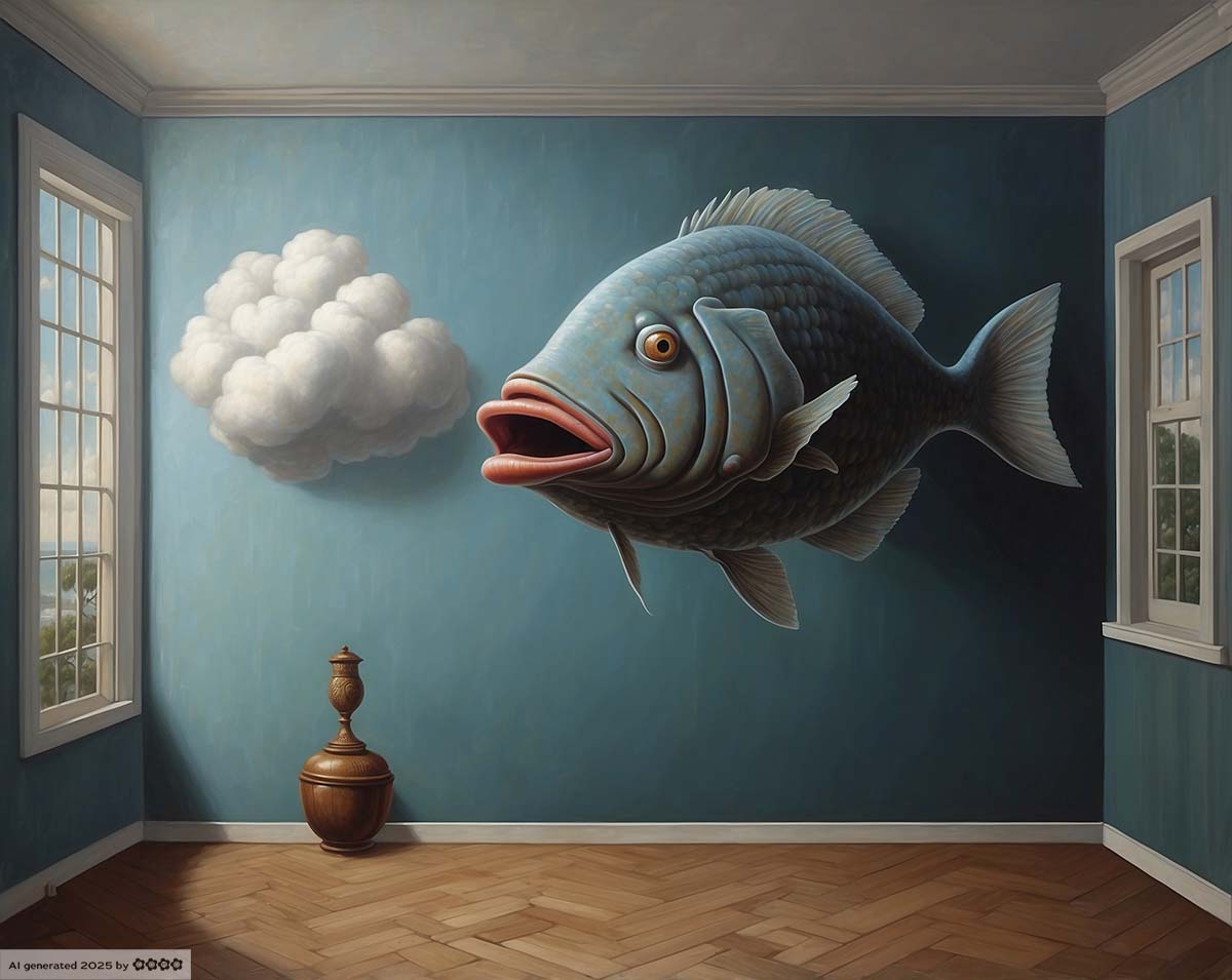 Für diese Bilder habe ich den Künstler René Magritte im Prompt erwähnt.